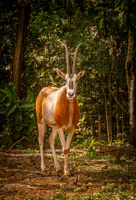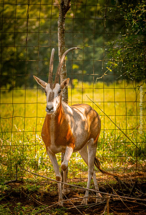Pertenece al grupo de los "Orix" que hace referencia al grupo de antílopes con aspecto de caballo con cuernos largos y anillados, siendo esta especie el único del grupo que posee los cuernos curvos. Su nombre común, "cimitarra", parte de que sus cuernos están dispuestos curvos hacia atrás en forma de cimitarra. Este antílope tiene un peso aproximado de entre 396 a 440 lb, posee pelaje blanco con coloración rojiza entre las patas delanteras y el cuello, careciendo de máscara facial. Habita zonas desérticas o áridas, siendo su alimentación estrictamente herbívora, puede consumir semillas y frutos que encuentre a disposición.