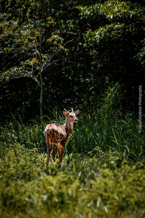 Mamífero artiodáctilo de tamaño medio, puede alcanzar un peso entre 154 a 198 Lb. Su pelo es color castaño rojizo a castaño grisáceo. Presentan manchas blancas redondeadas durante toda su vida sobre el color marrón. Los machos disponen de astas ramificadas las cuales cambian cada cierto tiempo. Pueden vivir en grupos conformado por uno o dos machos y varias hembras con cría o juveniles. Se alimenta principalmente de hierba, así como de hojas y frutos de forma ocasional.